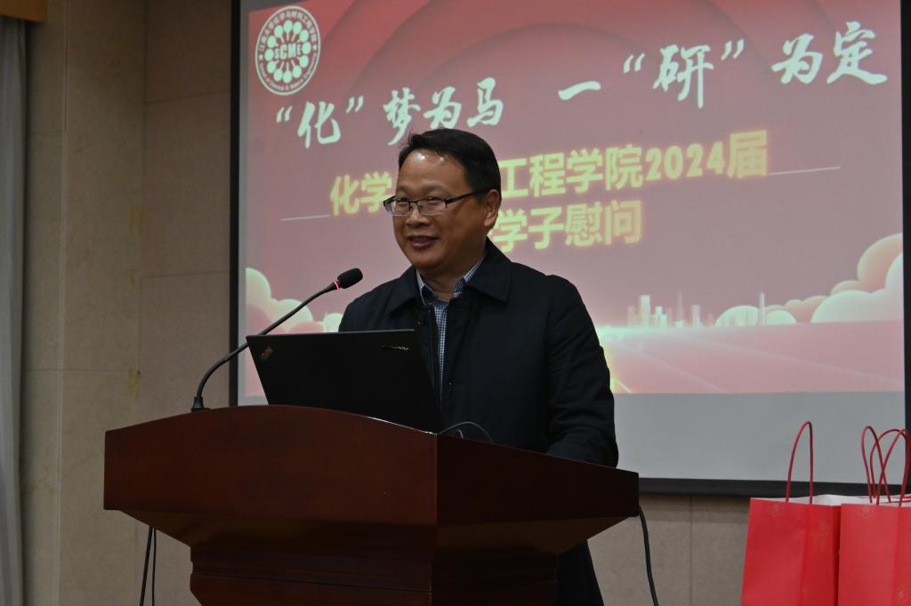 为舒缓考研学子的复习压力,帮助考研学子坚定信心,12月7日下午,球友会在化工楼B329会议室举办“化”梦为马,一“研”为定2024届考研学子慰问活动,公司党委书记潘庆伟,党委副书记、副经理董霞,班主任林良良、徐鹏武、刘凡、孙亚娟、陆双龙及部分考研员工出席活动。活动由学工办主任兼分团委书记、2020级本科生辅导员鞠峰主持。