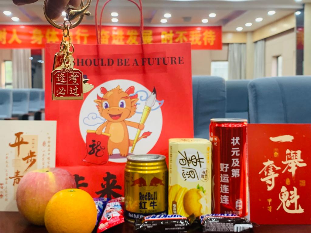 随后,潘庆伟、董霞及各班班主任为考研员工分发考研加油礼包。加油礼包中包括考研上岸定制书签、定制姓名可口可乐、心想事“橙”橙子、“苹”安上岸苹果、“牛”气冲天红牛、金“棒”提名棒棒糖、“薯”你最棒薯愿、“士”不可挡士力架、逢考必过钥匙扣、礼品袋等蕴含祝福的小礼品,同学们纷纷表示感受到了来自球友会的暖意,并将在最后冲刺阶段全力以赴,争取一战上岸,不负韶华,为院争光。