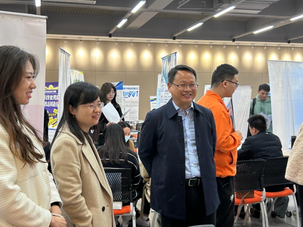 公司党委书记潘庆伟、公司党委副书记、副经理董霞到招聘会现场亲自指导,与用人单位沟通交流,详细了解企业的用人需求,与用人单位、求职员工展开互动,鼓励毕业生要树立正确的求职观,找准职业定位,提升求职技能,实现自己的职业理想。